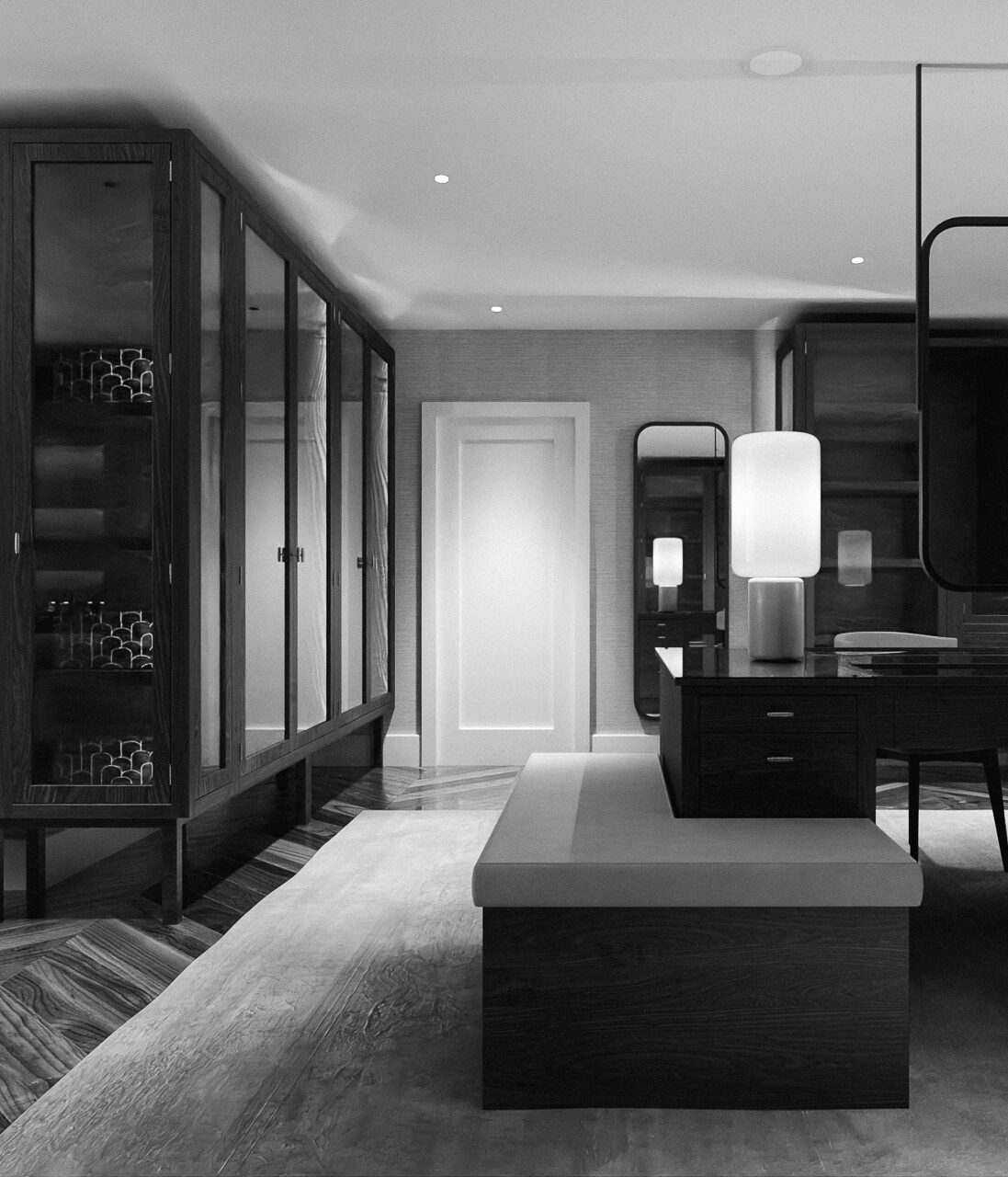In collaboration with Moir Wade we present a truly exceptional example of interior architecture and bespoke craftsmanship. This luxury dressing room—designed and visualised in-house—epitomizes timeless elegance, tailored functionality and refined spatial design.